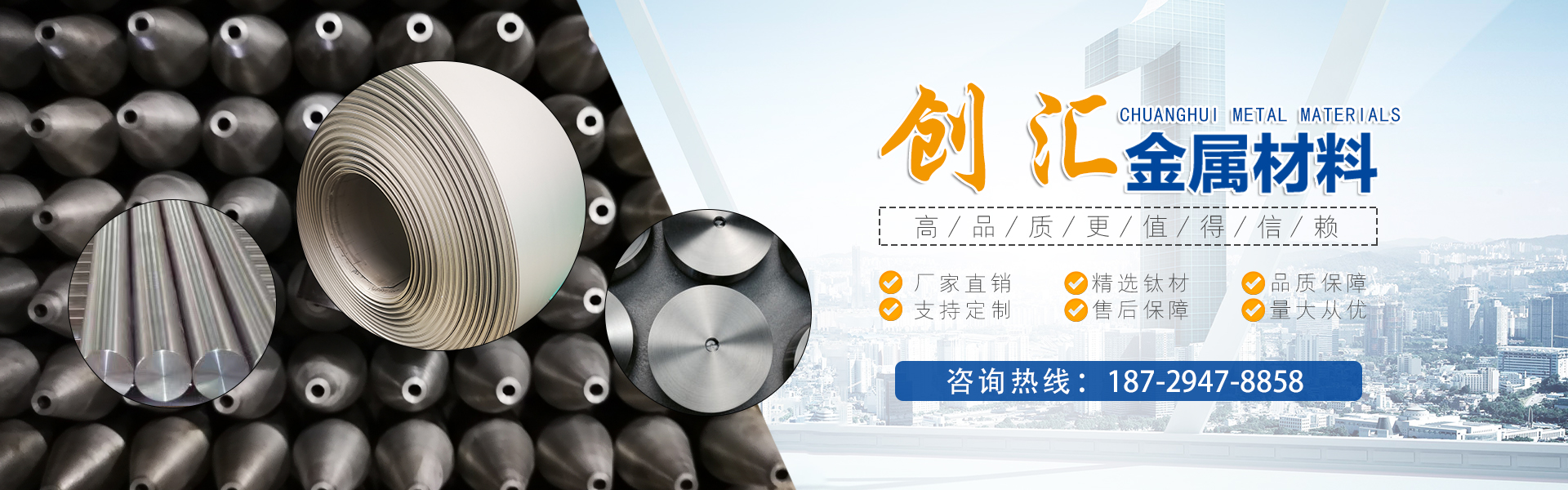 寶雞市創(chuàng)匯金屬材料有限公司,位于有“中國鈦谷”之稱寶雞寶鈦路南段,這里也是國家重點支持和扶持的有色金屬材料資源產(chǎn)業(yè)基地,我司專業(yè)從事鈦、鋯、鉿、鎳鉻、鎢鉬、鉭鈮、合金材料、復(fù)合材料,板、棒、絲、管、箔材等,設(shè)備制造,金屬制品機(jī)械加工銷售。